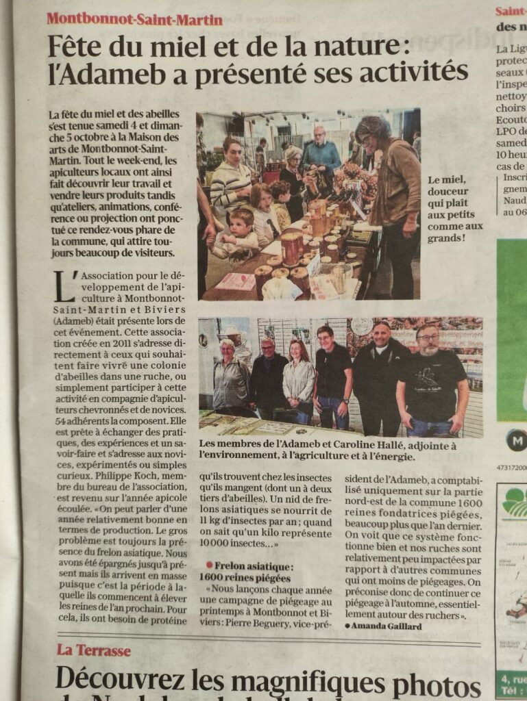 Les bénévoles de l’association ont animé le stand tout au long du week-end, répondant aux nombreuses questions sur la vie des abeilles, la production de miel, la lutte contre le frelon asiatique, ou encore la place essentielle des pollinisateurs dans notre environnement.